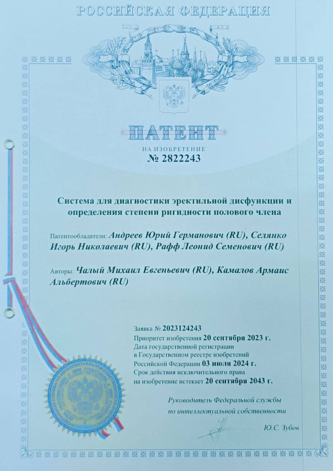 •5 патентов на методы диагностики и лечения мужских заболеваний.